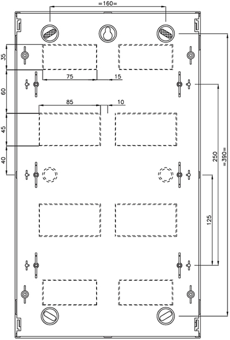 - Крепежные отверстия овальной формы для удобства установки и вертикального выравнивания щита.