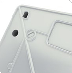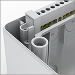Выдавливаемые отверстия для подведения кабеля сбоку выполнены с внутренней стороны, что позволяет сохранить гладкой внешнюю поверхность щита. |