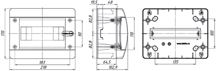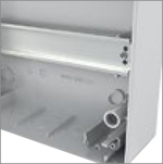 Крышка щита имеет выдавливаемые элементы под дополнительные модульные устройства. |