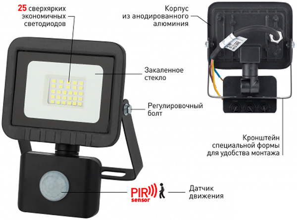 Светодиодные прожекторы "Эра" серии LPR-041 с датчиком движения подходят как для внутреннего, так и для наружного применения.