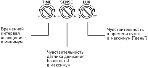- регулировка чувствительности датчика движения - радиуса зоны чувствительности.