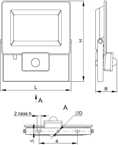 Инфракрасный датчик движения автоматически включает и отключает прожектор в заданном интервале времени в зависимости от наличия движущихся объектов в зоне обнаружения датчика и заданного уровня освещенности.