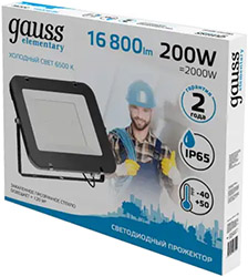 Прожектор светодиодный Gauss 691511200 Elementary (200 Вт, 16800 лм, 6500 К, IP65), черный