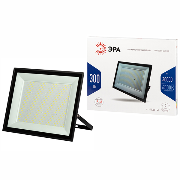 Прожектор светодиодный LPR-023-0-65K-300 "Эра" (300 Вт, 30000 лм, 6500 К, IP65), черный