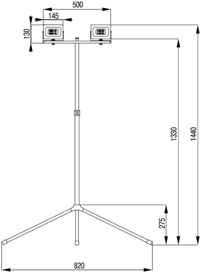 | Конструктивное исполнение | 2 прожектора на штативе, сетевой шнур, вилка с заземляющим контактом |