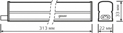 Светильник светодиодный линейный Gauss TL Basic 4 Вт (220 В, 300 лм, 4000 К, IP20), 313 х 22 х 33 мм