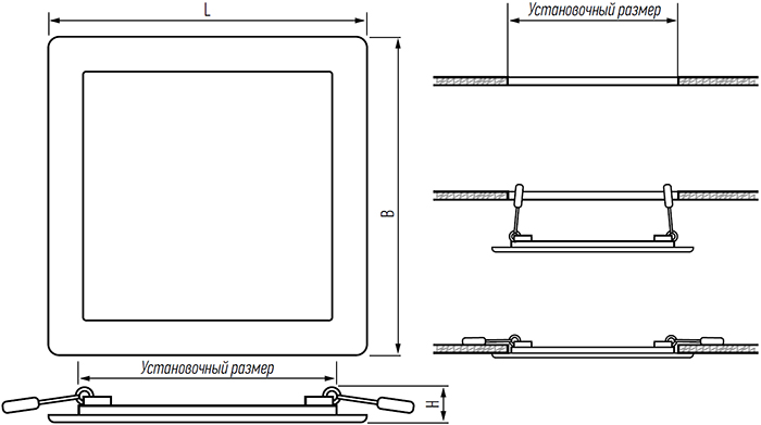 Встраиваются в потолок, закрепляются с помощью стандартных пружинных зажимов (в комплекте).