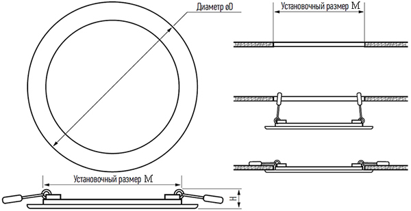 Светильники встраиваются в потолок, закрепляются с помощью стандартных пружинных зажимов, входящих в комплект.