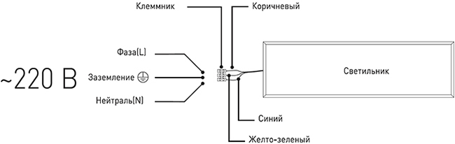 - Для подключения светильника необходимо подвести к месту его монтажа 3-жильный провод.