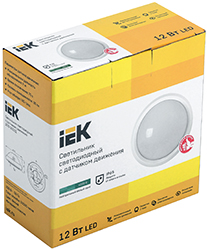 Светильник ДПО 5032Д IEK LDPO1-5032D-12-4000-K01 (12 Вт, 840 лм, 4000 К, IP65), круг, белый, с микроволновым датчиком движения