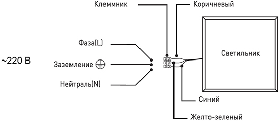 - Для подключения светильника необходимо подвести к месту его монтажа трехжильный провод сечением не менее 0,75 кв.мм.