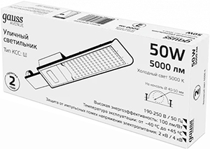 Светильник светодиодный уличный Gauss 629534350 Avenue (50 Вт, 5000 лм, 5000 К, КСС "Ш")