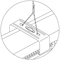 - Монтаж светильника на подвесах производить при помощи скоб монтажных, входящих в комплект изделия, и тросов (тросы в комплект не входят).