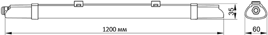 Светильник светодиодный ДСП1310 IEK LDSP0-1310-36-4000-K01 (36 Вт, 2880 лм, IP65, рассеиватель матовый), длина 120 см, цвет свечения нейтральный белый