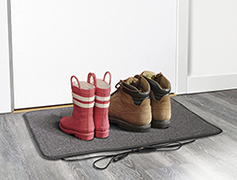 Поверхность греющего коврика выполнена из высококачественного грязеотталкивающего ковролина.