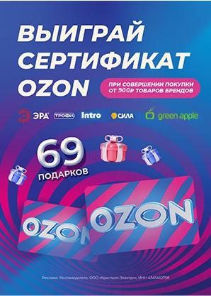 Объявляем мега-розыгрыш для всех покупателей «Кристалл-Электро» с общим призовым фондом 110 000 рублей! Теперь ваши покупки станут ещё выгоднее.